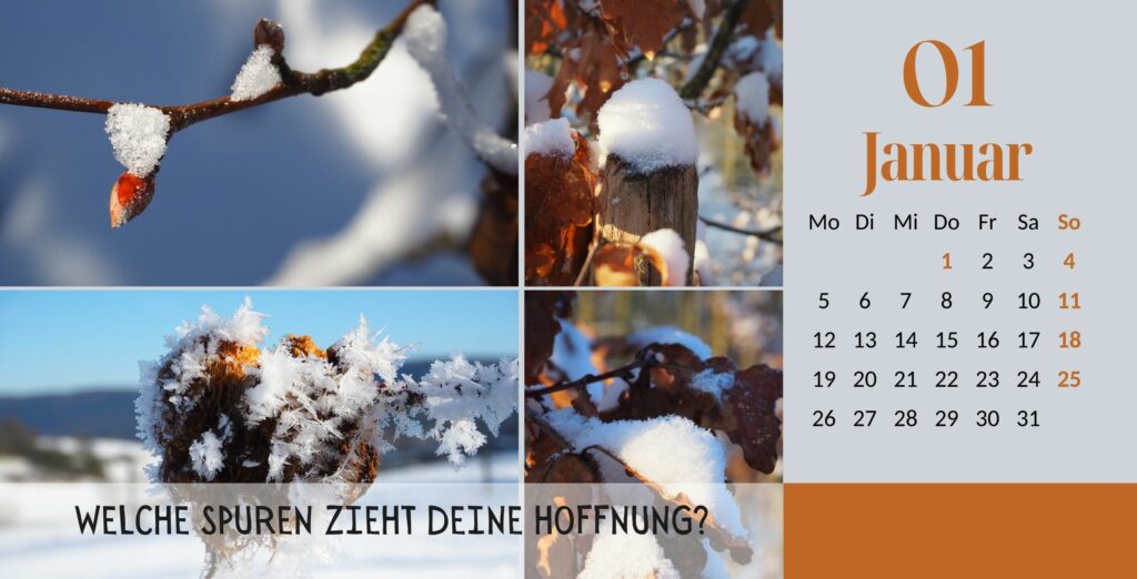 Ein neues Jahr, der Beginn einer neuen Hoffnungsgeschichte – mit dir selbst, mit anderen, mit…? Lasst Euch von der Hoffnung an die Hand nehmen, pilgert los und entdeckt unterwegs die Hoffnung für Euch und für die ganze Welt.