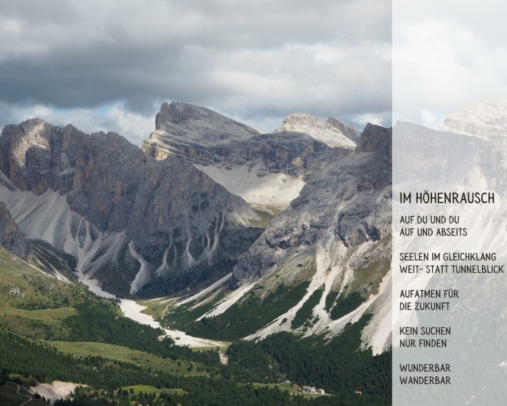 Aus meinem allmählich zu Ende gehenden Urlaub grüße ich Euch ganz herzlich und sende eine weitere lebens.verbunden-Post 2025 auf ihren Weg in die weite Welt. Ich lade euch ein, an diesem Spätsommerabend noch einmal mit mir auf Reisen zu gehen: Der Weg führt uns über den Brenner zunächst in das Alpinstädtchen Sterzing und dann weiter hinein ins Grödnertal nach Wolkenstein, das neben vielen Steinen auch ab und an seine wolkigen Seiten zeigt. Inmitten der Dolomiten grüßt allmorgendlich der Langkofel freundlich und lädt auf weiten Hoffnungswegen zu neuen Berg- und Taltagen ein. Die Geisslerspitzen, den Plattkofel und das Sellamassiv umwandern wir und auch die Marmolata grüßt auf unseren Wegen mit ihrem Gletscher um die Ecke. Unterwegs treffen wir auf die Franziskaner in Bozen, allerhand Fresken und Schnitzkunst (…es weihnachtet alsbald ;)) und auch der Herr Kaiserschmarrn lässt mit seiner Prinzessinnenbrause zu Tisch bitten, vom guten Käsebrot mal ganz zu schweigen! Und die südtiroler Abendtischrunden erst – viva la Kalorien-Gioia! Ein Reisebuch voll bildhafter Eindrücke erwartet euch; die sich windenden Lockenkopfumdrehungen pausieren diesmal (zumindest weitestgehend) und sind dem eigenen Innenleben vorbehalten… und nun: Frohes Hoffnungsreisen! Du möchtest die komplette Ausgabe der lebens.verbunden-Post lesen? Dann kannst Du Dich hier dazu anmelden.